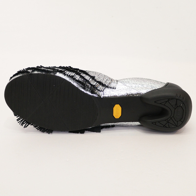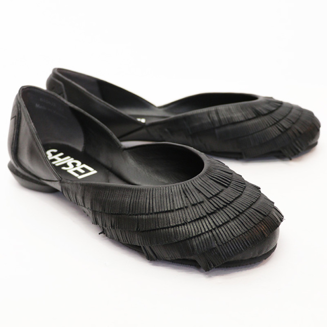 フリンジの長さや細さ、動きにこだわったエレガントなパンプス。地面にはギリギリつかないフリンジはレザーと思えないほど細く繊細で、美しいデザイン。履き込んでいく毎にフリンジが跳ね、反り上がったり曲がったりと、変化していくのもデザインの一部で楽しめます。一見浅く華奢なセパレートパンプスですが、足に吸い付くようなフィット感がありながら窮屈さはなく、足の動きにしなやかにフィットしてくれます。