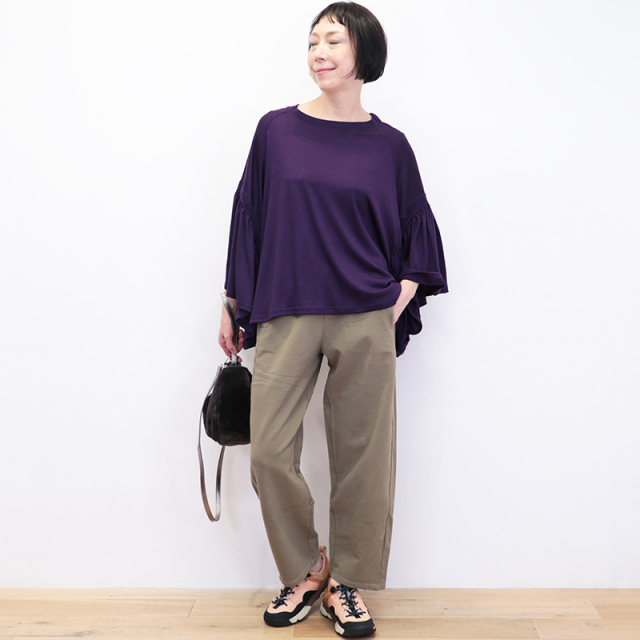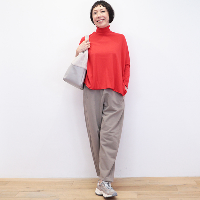 ジャージ素材のテーパードパンツ。表面はスムースでストレッチが効いており、裏は薄手の裏起毛になっています。動きやすく温かく着心地抜群。スウェット感を抑えたソリッドカラーでカジュアルになり過ぎないところが嬉しいポイント。パンプスやローファーでお仕事に、休日はスニーカーでラフにと、オールマイティに活用いただけます。