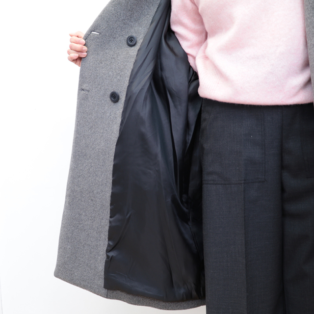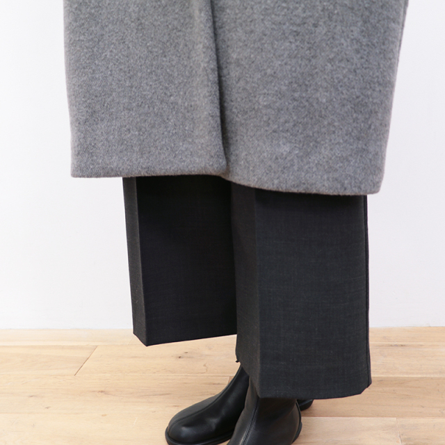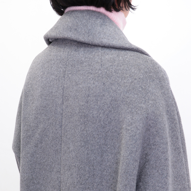 TICCAの代表的なアイテムであり、多くの方に愛されているテントコート。アームホールのハギを無くして贅沢に身頃を一枚で取ることで、肩幅の狭い人や大きい人にも対応できます。痩せてる方にもぽっちゃりさんにも、小さい方にも大きい方にも合うようなゆったりとした絶妙なシルエットに仕上げました。袖丈も折って調整できるようにカフス仕様にしています。こだわりぬいて作られた素材は、選び抜かれた高品質なラムウール原料を国内産地特有の美しい水を使用して一流の職人達が仕上げることで、非常に美しく上質な毛並みの表情、その見た目に反する驚くほどの軽さ、保温効果に優れた機能性を持った宝物のような素材です。その色がもつ美しさを最大限いかせるように色ごとに細部の作り方まで変えています。グラデーションの色糸を組み合わせて無数の色で奥行きをだしたのがグレー、美しい起毛をあえておさえることで凛々しく美しい表情に仕上げたネイビー、ブラック。シルエットや素材、着心地にこだわったTICCAの代表作です。