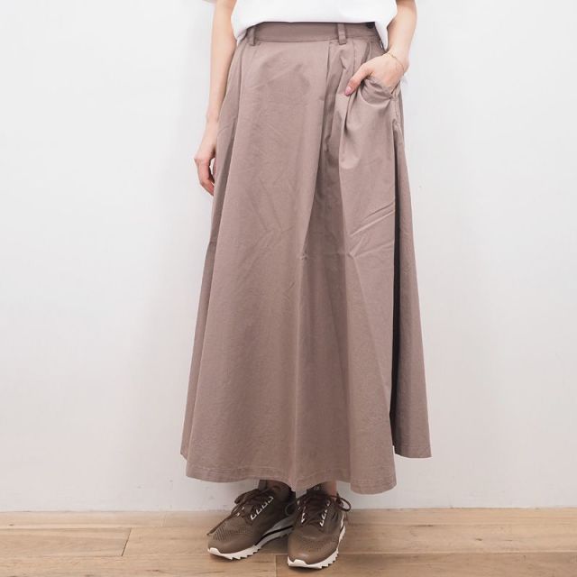 格子上に織られているリップストップ生地が特徴のフレアスカート。リップストップ生地とは、元々軍用に開発され「rip(裂ける)」ことを「stop(止める)」特徴があります。今では登山などのアウトドア用品に用いられています。そんな丈夫さを持った生地を使用したフレアスカートは、是非春夏のお出かけに、デイリーにたくさん活用していただきたいアイテム!コットンですがシャリ感のある薄手の生地なので、暑い季節にも重宝します。