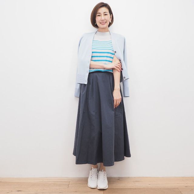 | モデルデータ | 身長 165cm/バスト 81cm/ウエスト 61cm/ヒップ 83cm/足のサイズ37/着用サイズ 38 ※サイズはおおよその目安です。 |