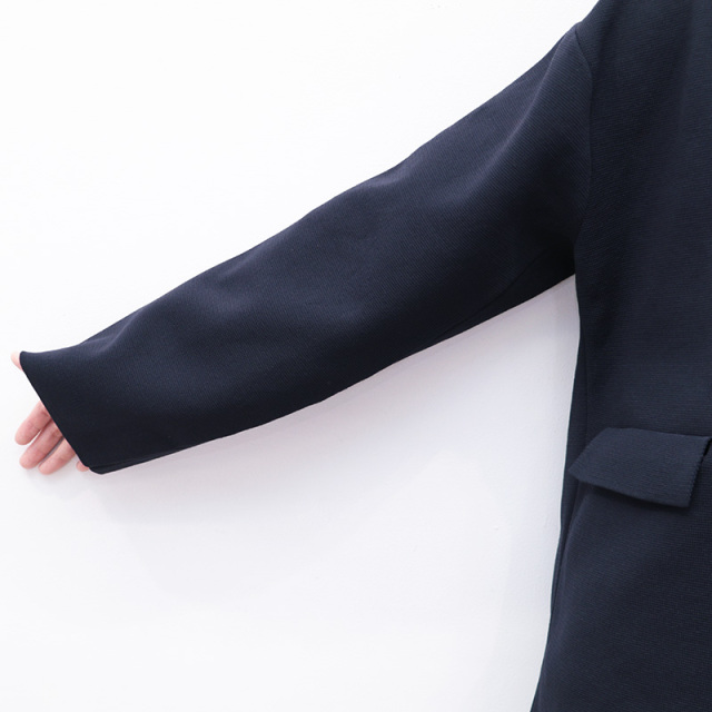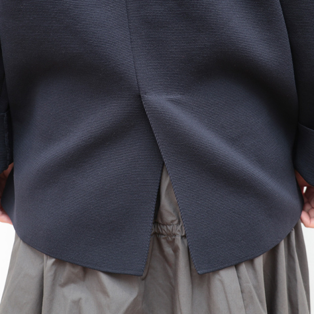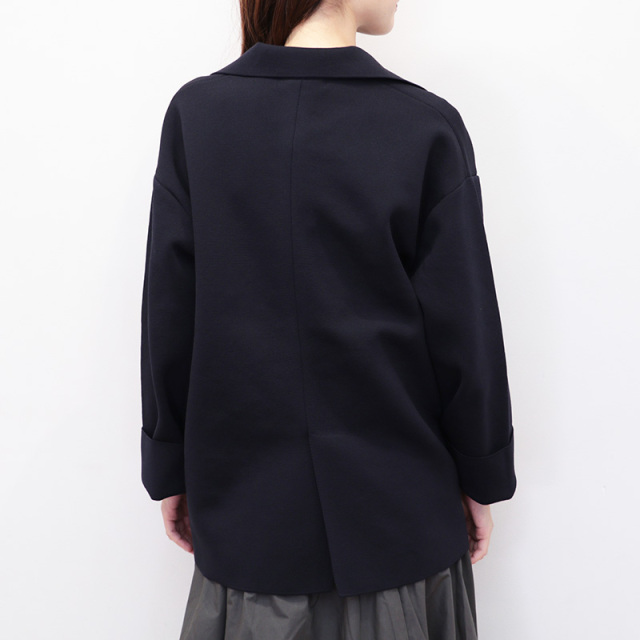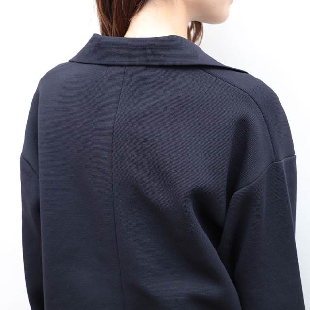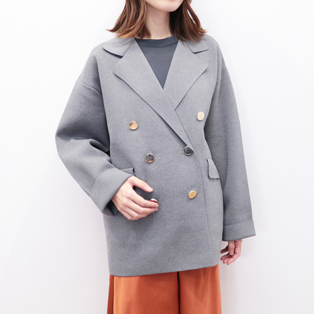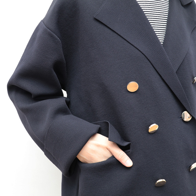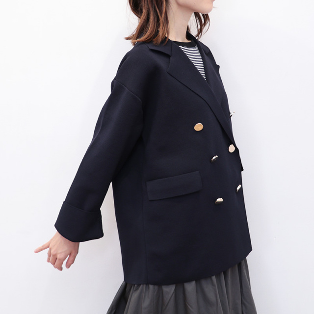 ミラノリブ編みのハリ感あるニット素材で作ったダブルジャケット。軽く着心地のいいニットなので、季節の変わり目から活用でき、ストレスの無い着心地です。生地で仕立てられた紺ブレはカチッと感がありますが、ニットの柔らかさとゆったりした設計で程よいきちんと感。パンツやスカート、ワンピース、デニム合わせと幅広いスタイリングが可能。トラディショナルな気分にピッタリの一枚です。
