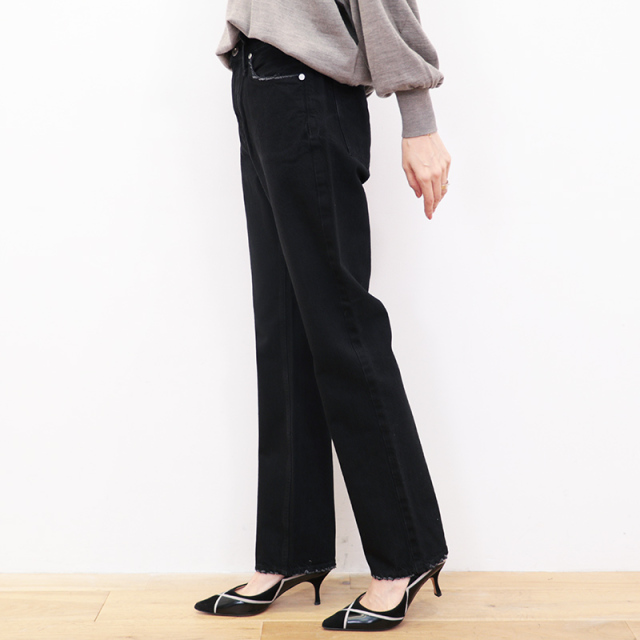 新作“THE ELISA”。ストレートに見えて、若干裾がテーパードした自然と綺麗見えするシルエット。脚の形を拾わず、絶妙なバランスでスラリと見せてくれる設計です。古着を彷彿とさせるような加工を施しているので、べたっとせずに奥行きがあり、クールな存在感も醸し出しています。オールシーズン、どんなコーデにも合わせやすい万能デニムです。