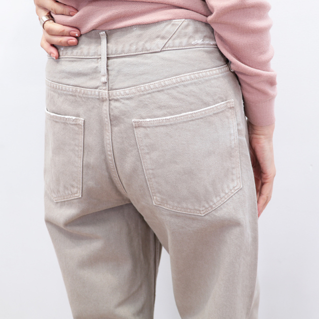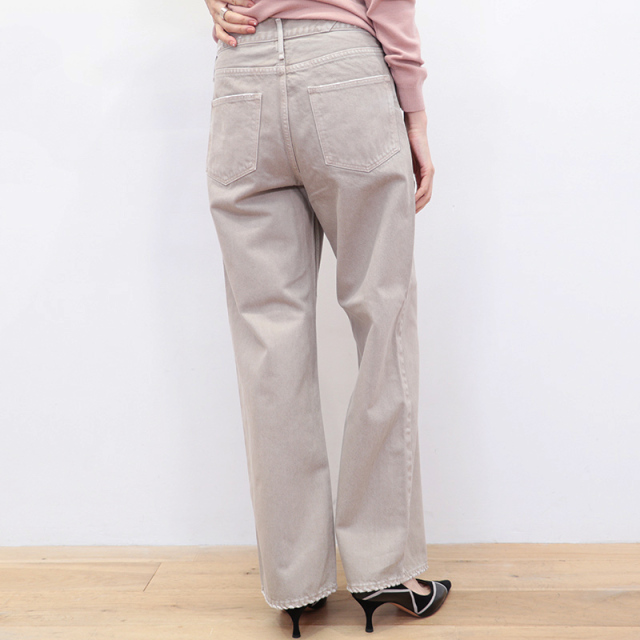 日常に履きやすく日本人の体型に合うシルエットで人気の“THE NIECE” をアップデートした “THE NIECE MID-RISE”。ワイドストレートな THE NIECE をミドルライズに改良し、より腰まわりがきれいに見えるよう追求しました。太すぎない程よいワイドさで、真っ直ぐな脚のラインを引き出し美脚効果絶大。秋らしいMAPLEベージュのカラーは、上品な印象もあり綺麗めなコーデにも違和感なく合わせることが出来ます。