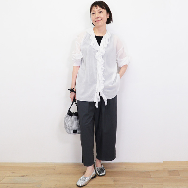 TOP ブランドVVeritecoeur|ヴェリテクール NEW ITEM | 新作アイテムボトムス アイテムボトムスパンツワイド Veritecoeur ヴェリテクール ST-188 タイプライターコットンイージーパンツ ワイドパンツ veritecoeur ベリテクール | 26SS ボトムス 春夏 価格: ¥20,000 (税込 ¥22,000) [ポイント還元 1,100ポイント~] 販売期間: 2026年02月14日21時00分~2026年12月31日22時59分 サイズ / カラー KHKBEG/カーキベージュ SUMIKURO/スミクロ FREE × ○ 数量: 個 サイズカラー在庫FREEKHKBEG/カーキベージュ× SUMIKURO/スミクロ○ 返品についての詳細はこちら レビューはありません 存在感のある軽快なワイドパンツ とても細い80番手の超長綿を使用した高密度タイプライター生地のワイドパンツ。パリッとしたハリ感と軽さ、自然なシボ感が特徴です。 独特な生地の風合いと、存在感あるワイドシルエットで個性のあるスタイリングを楽しめます。 注目!このブランドのスタッフブログはこちら! ブランドについてabout the brandVeritecoeurヴェリテクール フランス語の「Verite=真実」と「coeur=心」を組み合わせ、真心という想いをブランド名に込めた福岡発のブランド。デイリー使いしやすいシンプルなデザインながらも、どこか他とは違うこだわりが魅力的。天然素材の魅力を生かした優しい生地感がポイント。使い込むごとに愛着の湧くような、シンプルで長く使えるアイテムを展開しています。 ブランド商品の一覧はこちら ディテールdetail 素材cloth カラーcolor KHKBEG/カーキベージュ SUMIKURO/スミクロ コーディネイトcoordinate 着用アイテムトップス キャップ バッグ シューズ 着用アイテム トップス バッグ シューズ サイズsize FREE(単位:cm)ウエスト59-80/ヒップ146/股上46/股下57/ワタリ幅42/裾幅27.5 補足サイズには多少の個体差がございます。 モデルデータ身長 170cm/バスト 87cm/ウエスト 68cm/ヒップ 91cm/足のサイズ37/着用サイズ FREE※サイズはおおよその目安です。 サイズガイドはこちら 仕様specification素材コットン100%原産国JAPAN 洗濯方法how to wash洗い方家庭での洗濯可/ドライ・ウェットクリーニング可 おすすめ商品はこちら TICCA ティッカ TBEA-241 テントコート ミドルコート ウールコート メルトン オーバーサイズ | 25AW アウター 秋冬 ¥63,000(税込 ¥69,300) 商品を見る TICCA ティッカ TBEA-244 ノーカラーテントコート ミドルコート ウールコート メルトン オーバーサイズ | 25AW アウター 秋冬 ¥59,000(税込 ¥64,900) 商品を見る NANGA ナンガ ND2442-1C603-B リブカラー キルティングダウンコート キルトダウン RIB COLLAR QUILTED DOWN COAT W | 25AW アウター 秋冬 ¥42,000(税込 ¥46,200) 商品を見る NANGA ナンガ ND2442-1A005-A オーロラテックスダウンジャケット ショートダウンジャケット ウィメンズ AURORA TEX DOWN JACKET W | 25AW アウター 秋冬 ¥42,000(税込 ¥46,200) 商品を見る NANGA ナンガ N2531-0D007B オーロラテックスダウンコート ロングダウンジャケット ウィメンズ AT DOWN HALF COAT W AURORA TEX DOWN JACKET | 25AW アウター 秋冬 ¥53,000(税込 ¥58,300) 商品を見る COG THE BIG SMOKE コグザビッグスモーク 13101-110-1209-1 LAURA GATHERED SLV TOP ウールジャージ フリルスリーブニットプルオーバー フリル袖 HIGH GAUGE PURE WOOL JERSEY - C13 | トップス 25AW 秋冬 ¥29,000(税込 ¥31,900) 商品を見る COG THE BIG SMOKE コグザビッグスモーク 13101-226-435-1 DAISY TOP スクエアヘムスウェットプルオーバー カットソー ツイルジャージ AIRLY COCOON TWILL | トップス 25AW 秋冬 ¥26,000(税込 ¥28,600) 商品を見る COG THE BIG SMOKE コグザビッグスモーク 13502-232-1317-1 MIRANDA WRAP SKIRT フランネルジャージラップスカート タイトスカート ウール混 起毛 SOFT FLANNEL JERSEY - C13 | 25AW ボトムス 秋冬 ¥35,000(税込 ¥38,500) 商品を見る COG THE BIG SMOKE コグザビッグスモーク 13102-228-1314-1 MELODY RAGLAN TOP ジョーゼットダブルフェイスプルオーバー カットソー DOUBLE FACE SUITING - C13 | 25AW トップス 秋冬 ¥36,000(税込 ¥39,600) 商品を見る COG THE BIG SMOKE コグザビッグスモーク 13601-226-722-1 GENEVA WIDE LEG TROUSERS センターシームワイドパンツ ツイルジャージ AIRLY COCOON TWILL | ボトムス 25AW 秋冬 ¥32,000(税込 ¥35,200) 商品を見る COG THE BIG SMOKE コグザビッグスモーク 13802-231-1309-1 MILA PONCHO TOP ウールポンチョ フリースプルオーバー WOOL BLENDED ITALIAN FLEECE | トップス 25AW 秋冬 ¥36,000(税込 ¥39,600) 商品を見る 11/4販売開始 HERNO ヘルノ GI000318D エコファーブルゾン フーディーパーカー | 25AW アウター 秋冬 ¥136,000(税込 ¥149,600) 商品を見る 11/4販売開始 HERNO ヘルノ PI1283DIC シャイニーナイロンミドルダウンジャケット ダウンコート ロングダウン | 25AW アウター 秋冬 ¥155,000(税込 ¥170,500) 商品を見る 【正規品】HERNO ヘルノ PI155DLラミナー ゴアテックスインフィニウム ショートダウンジャケット GORE-TEX Laminar | 24AW アウター 秋冬 ¥169,000(税込 ¥185,900) 商品を見る kitt キット 424-c01 クルーネックコットンスウェットプルオーバー 裏起毛 裏毛 レディース メンズ ユニセックス 男女兼用 |トップス 定番 ¥15,000(税込 ¥16,500) ~ 商品を見る kitt キット 424-c02 フーディープルオーバーパーカー コットン