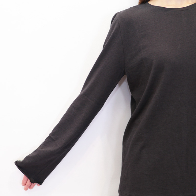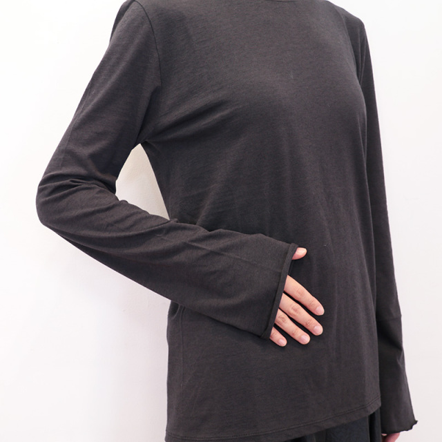 人気のロングTシャツを、カシミヤ混の素材に変え秋冬仕様にリニューアル。袖周りの程よい緩さのあるサイズ感がポイントで、レイヤードした時のバランスはもちろん、シンプルながらも1枚でも様になるデザインです。ネックの開きやシルエットなど細かいディティールにもこだわりの詰まった一着です。