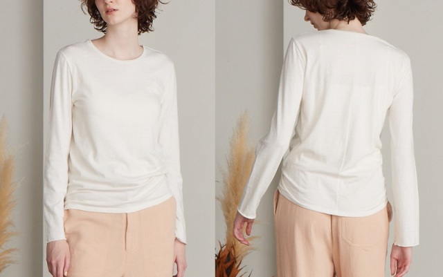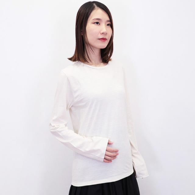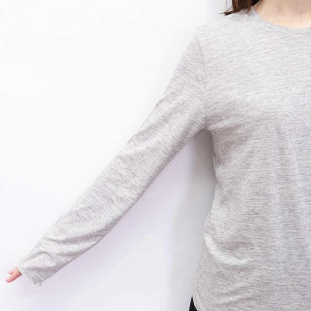 人気のロングTシャツを、カシミヤ混の素材に変え秋冬仕様にリニューアル。袖周りの程よい緩さのあるサイズ感がポイントで、レイヤードした時のバランスはもちろん、シンプルながらも1枚でも様になるデザインです。ネックの開きやシルエットなど細かいディティールにもこだわりの詰まった一着です。
