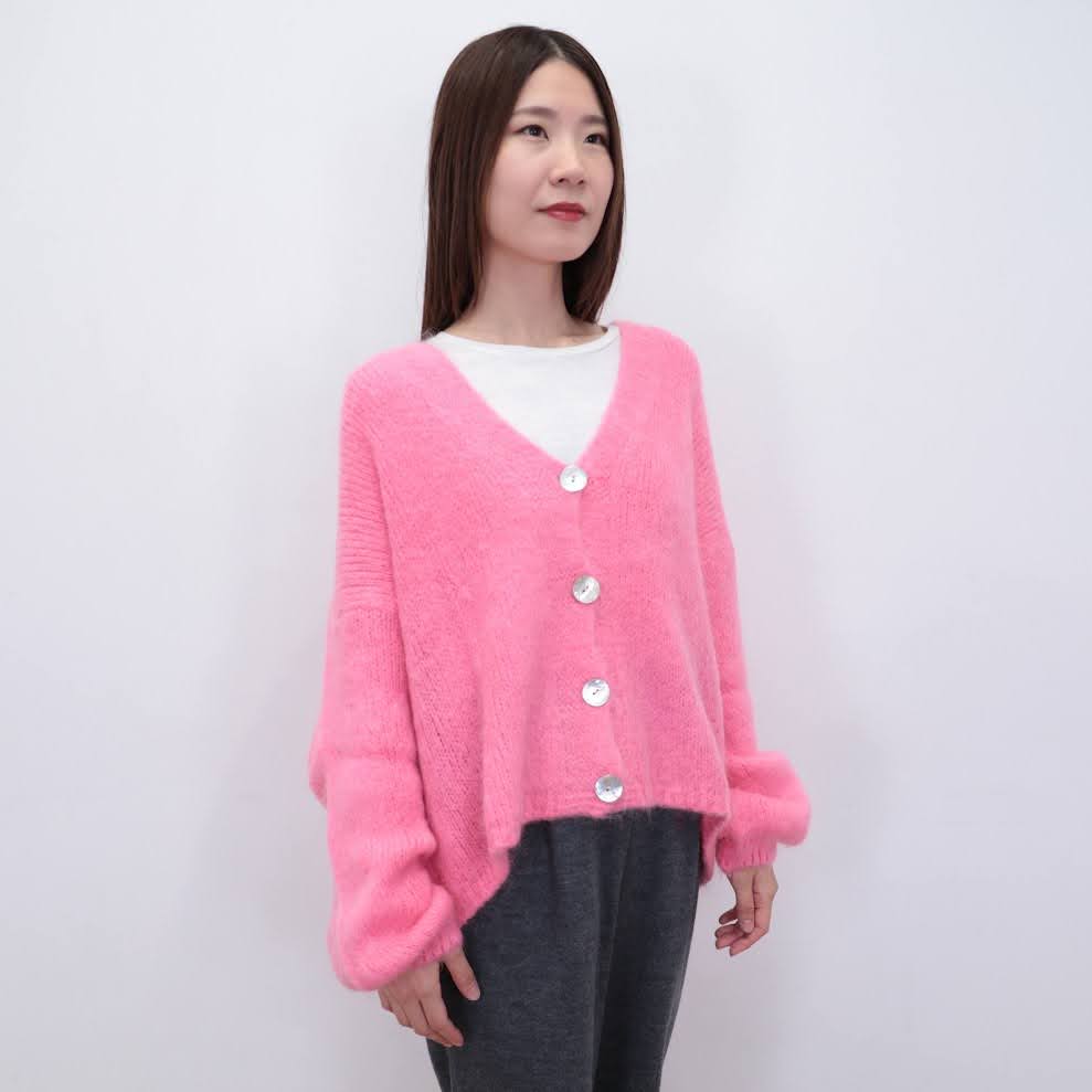 わたしのイチオシは、キャンディーカラーのモヘアカーディガン。
